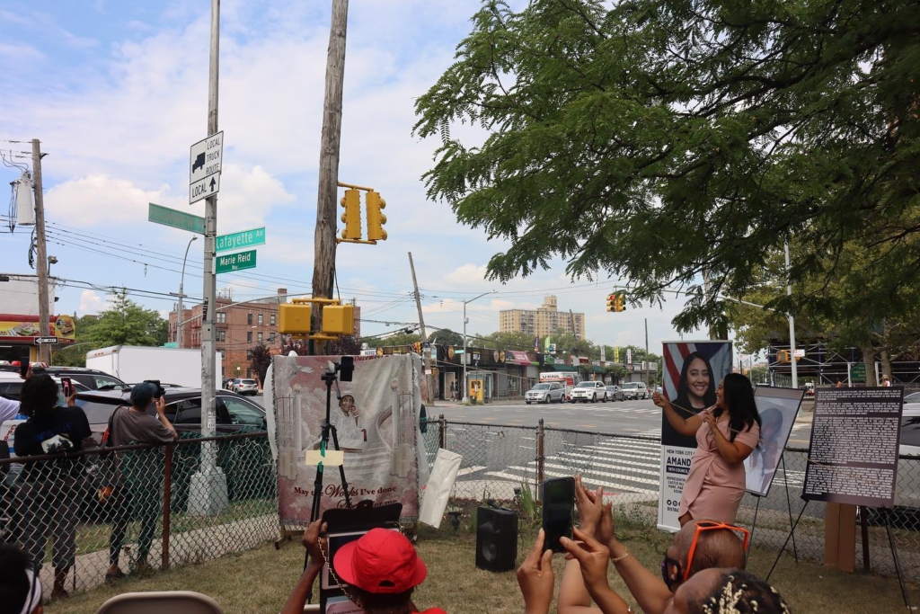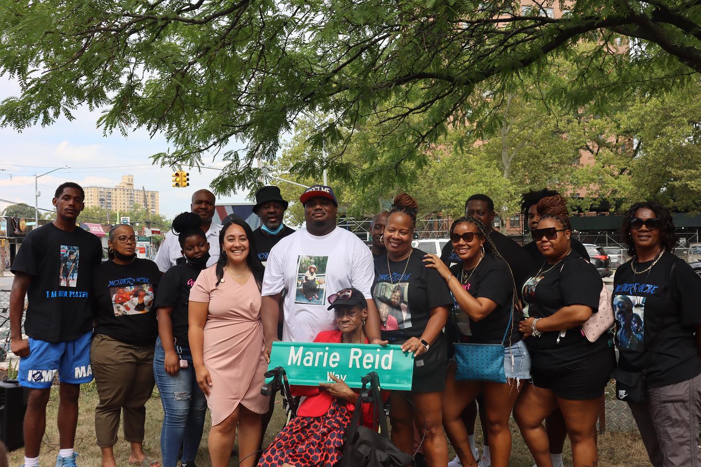 “Today we were able to celebrate and honor the legacy of the late Mrs. Marie Reid, beloved Soundview community member, mother, grandmother, philanthropist, and church member, with a co-naming ceremony on the corner of Soundview Avenue and Lafayette Avenue.” said Amanda Farías, “This corner is right next to the church that she helped service for more than 40 years and was a corner she passed every Sunday. That’s why it’s so special to have her recognized right here where she would have been most recognized. Having her family and the community she worked with at the ceremony has been an honor. Thank you to the family of Marie Reid for all the work you put in to get to today and the Department of Transportation for working with my office to make this very special street co-naming a reality.”