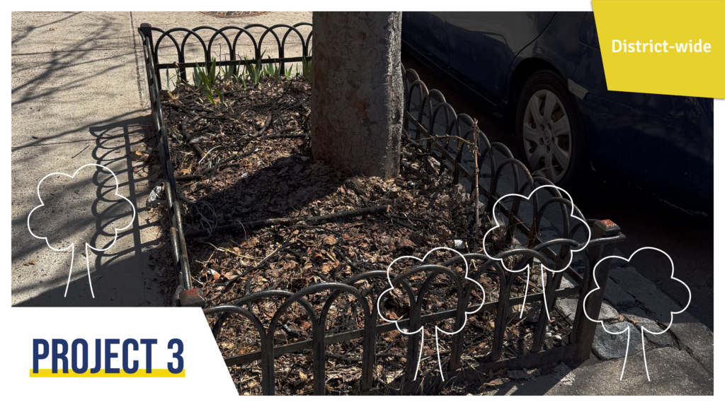 Street trees provide critical environmental services to our neighborhoods by absorbing floodwater, providing shade, trapping air pollution, and providing shelter for wildlife. Our district has many tree beds with live trees that are not protected by tree guards, which help minimize soil compaction and protect trees from physical harm and pet waste. A $200,000 allocation would provide funding for 100 tree guards throughout District 35. A more protected tree canopy ensures that residents can enjoy the benefits that trees provide to our community.